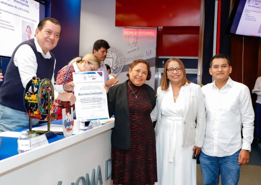 Asimismo, se reconoció la patente “Método para la identificación cuantitativa de Escherichia coli en productos alimenticios”, desarrollada por los científicos universitarios Natividad Castro Alarcón, José Yonathan Morales y Norma Edith Martínez Hernández, que representa un aporte clave para la seguridad alimentaria.