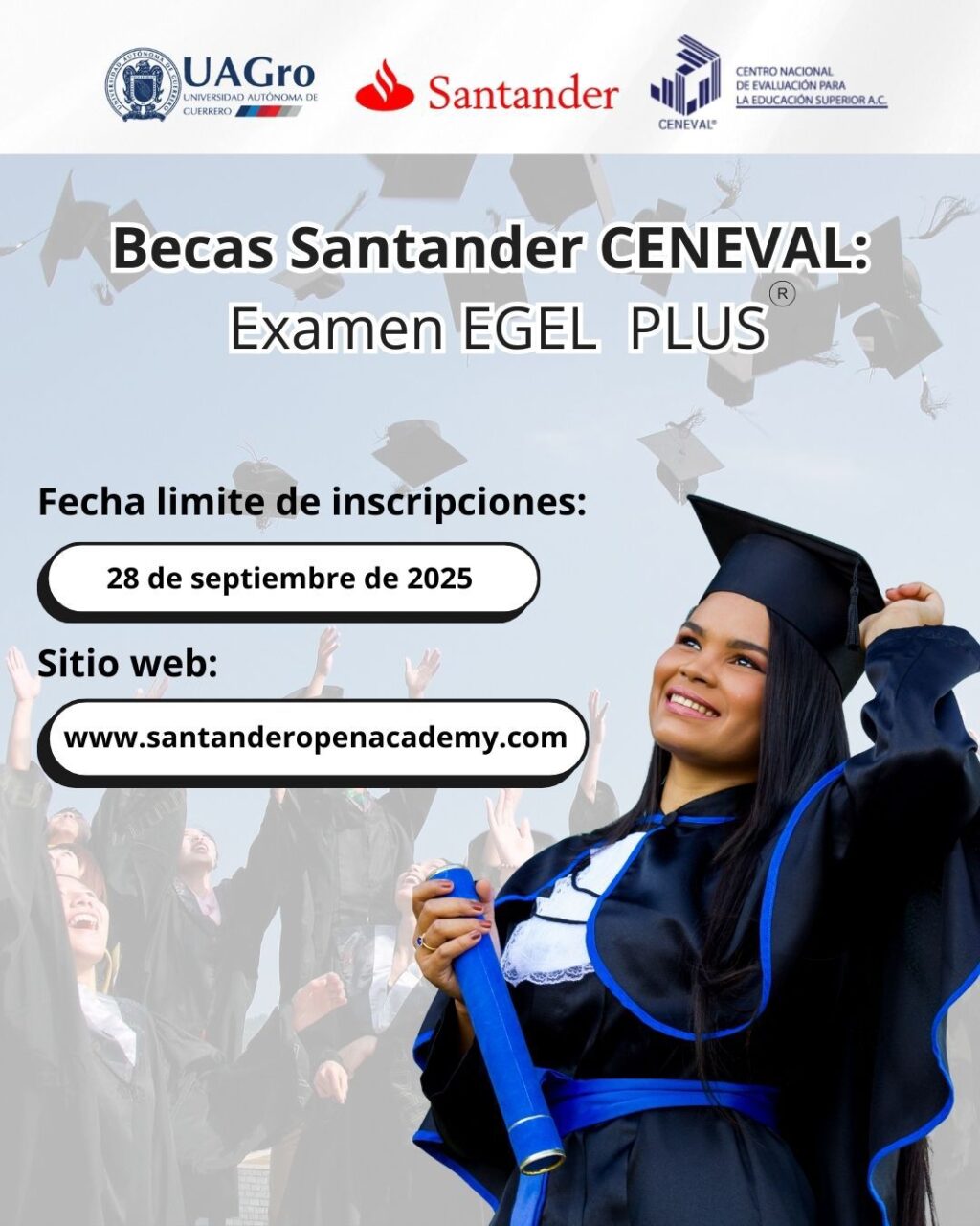 Gracias a la alianza entre Santander México y CENEVAL, puedes obtener una beca que cubre el 100% del costo del examen EGEL Plus.