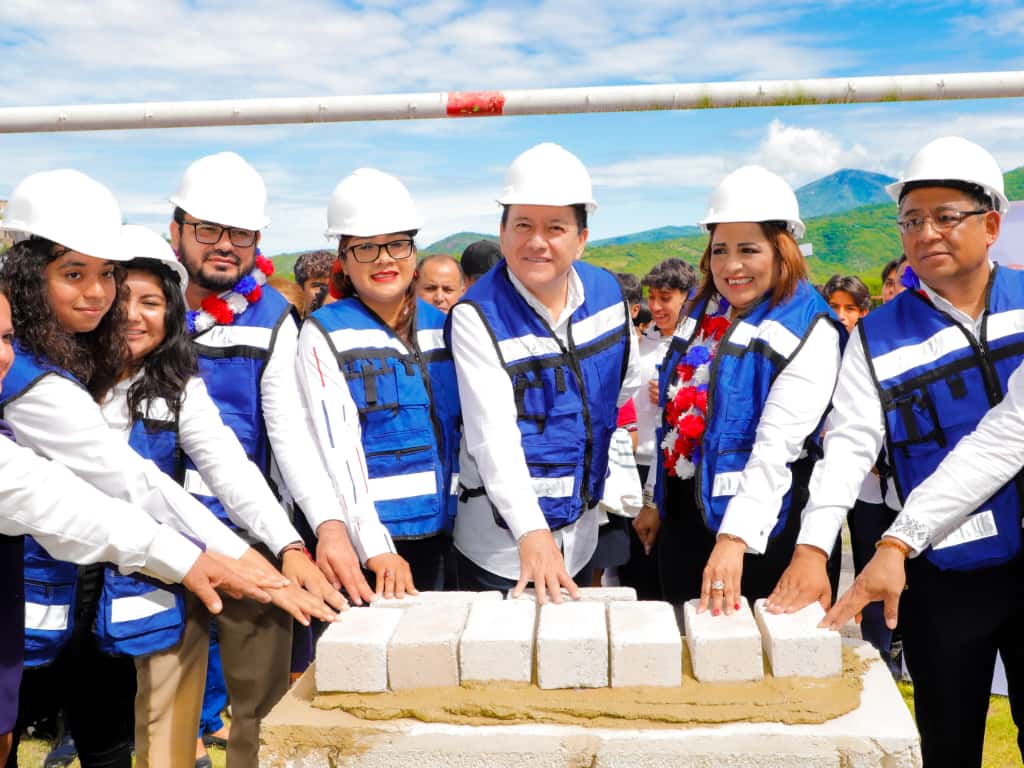 Zumpango del Río, Gro., 7 de octubre de 2025.- El rector de la Universidad Autónoma de Guerrero, Javier Saldaña Almazán, acompañado de la presidenta municipal de Eduardo Neri, Sara Salinas Bravo, colocaron la primera piedra para la construcción de una cancha de futbol rápido en la Escuela Preparatoria Núm. 36, como parte de las actividades por el 43 aniversario de este plantel.