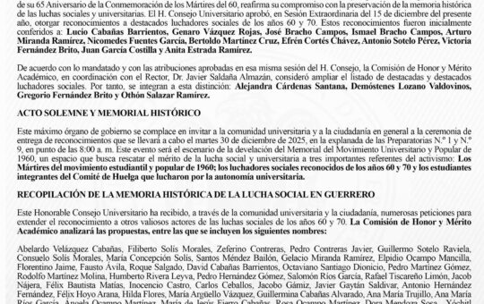 Chilpancingo, Gro., 22 de diciembre de 2025.- Comunicado que emite la Universidad Autonoma de Guerrero a su comunidad universitaria
