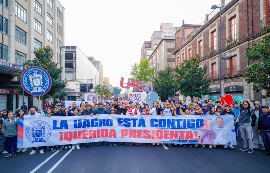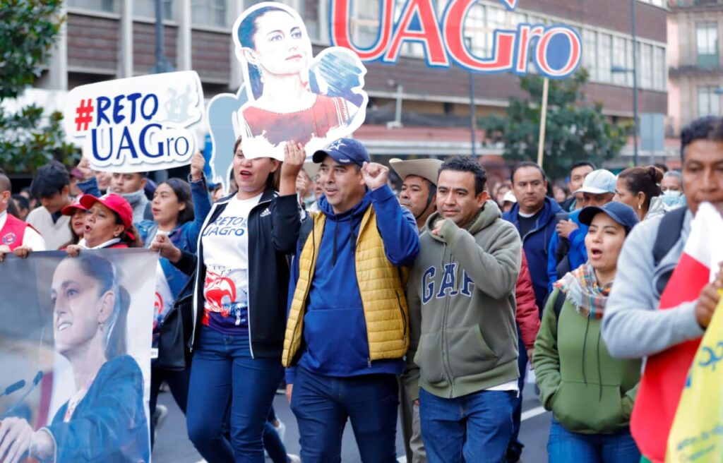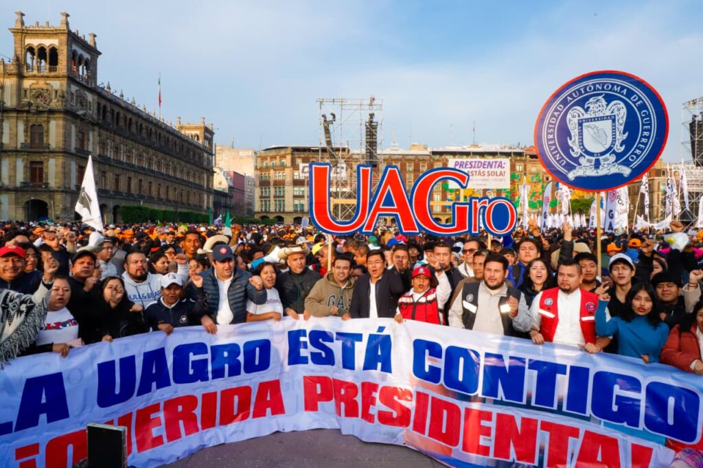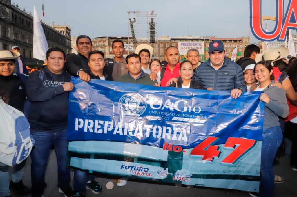 Se les vio muy animados en su recorrido para arribar a la plancha del Zócalo de la CDMX. Recordemos que Javier Saldaña, rector de la máxima casa de estudios y líder indiscutible de la UAGro, se ha declarado en diversas ocasiones claudista de corazón; desde que la actual presidenta empezó su búsqueda por la candidatura contó con el abrumador respaldo de la UAGro, que se hacía presente cada vez que se requería.