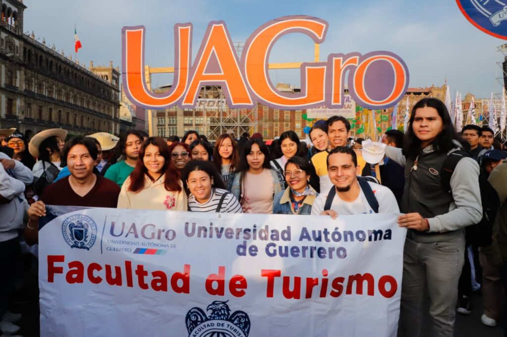 La Universidad Autónoma de Guerrero no se quedó atrás desde muy temprano contingentes de Acapulco y Chilpancingo salieron para estar presentes con un nutrido contingente de catedráticos y muchos jóvenes entusiastas coordinados por liderazgos universitarios.