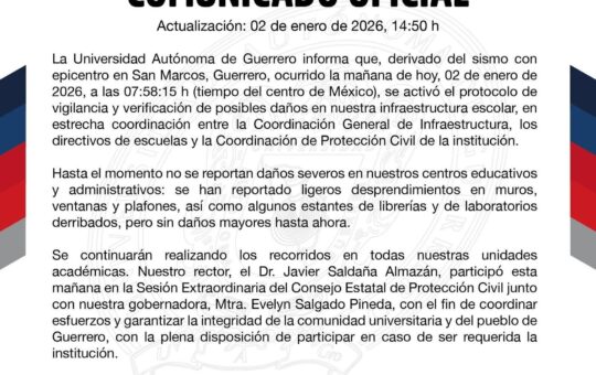 Chilpancingo, Gro., 2 de enero de 2026.- En mensaje dirigido a la comunidad universitaria, el rector de la Universidad Autónoma...